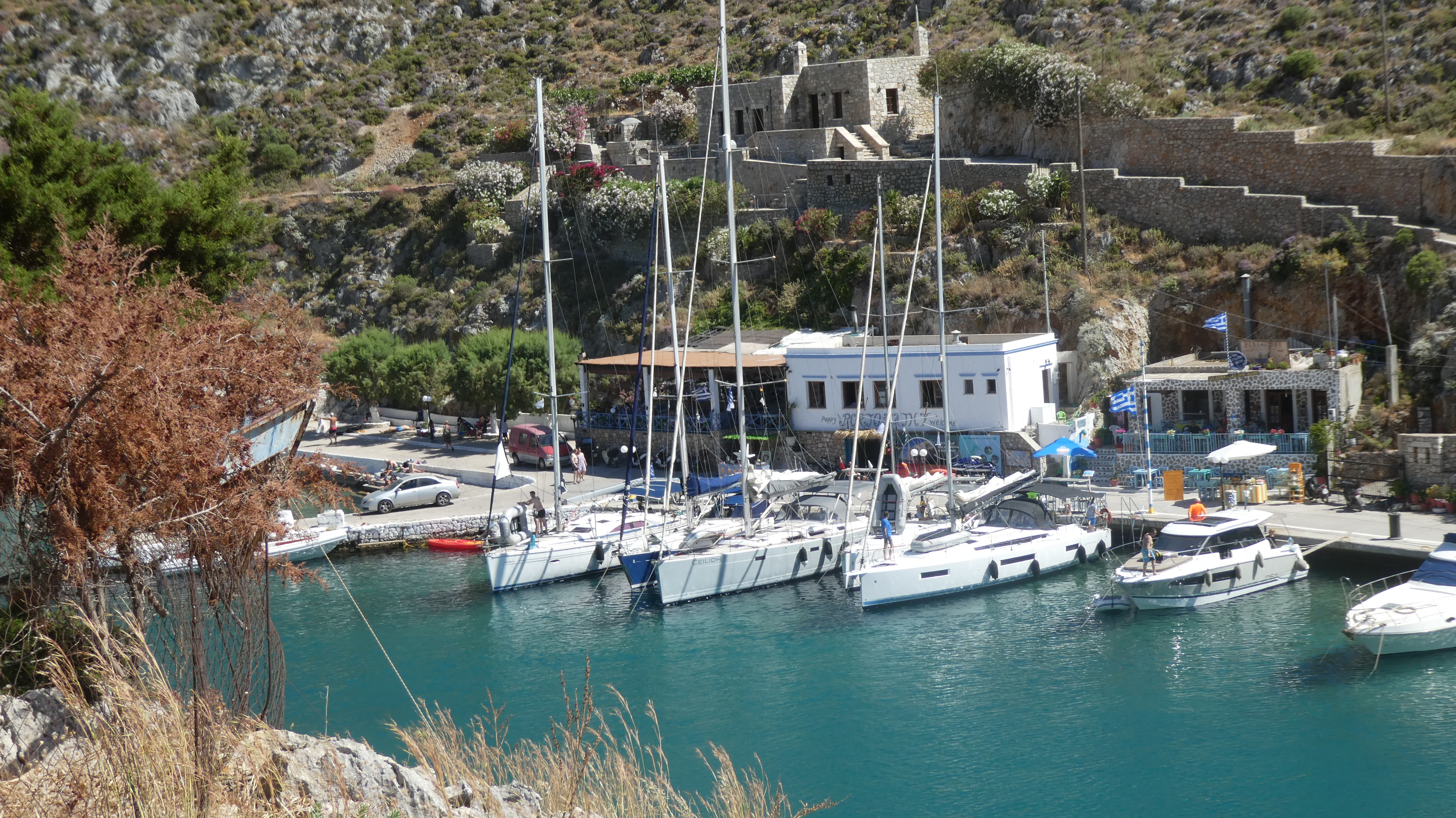 We hadden een Bavaria 44 Vision. Iets op leeftijd maar in prima staat.Cheque In en Out verliepen vlekkeloos vriendelijk snel en correct. Niets dan lof.We hebben alle dagen kunnen zeilen, De wind was prima tot 4 Bf. Slechts een enkele keer 's morgens op de motor gevaren.We hebben de dagelijkse zeilafstanden beperkt gehouden, omdat we zwemmen, ankerbiertje en wandelingetje op nieuwe eiland maken, ook leuk vinden.Eerste stop Vathy op Kalimnos. Prachtig gelegen in een soort Fjord. Hartelijk ontvangen (en geholpen) door spons -Bob. Een Griek met een grote spons op zijn hoofd.Tweede stop Leros, Pandeli: heerlijk achter anker gelegen, gezwommen, en flinke wandeling in leuk dorpje op heuvel met windmolens.Derde stop: Lipsi, op Lipsi: Wederom een super leuk authentiek dorpje, nog niet overspoeld door toeristen. Aan de kade gelegen voor een klein bedrag elektra en water.Vierde stop Kalimnos (westkant) Pirate Bay (bij Emborios). Wat een hemelse plek. 's avonds gegeten op een verhoogd terras tussen de boomtoppen. Mama zou wel "wat" maken. Dat bleek een mega schaal met vlees van de BBQ !!Voor de vrijdag (laatste dag) werd er harde wind voorspeld. Van de charteraar hadden we begrepen dat het vrijdagmiddag superdruk is bij het tankstation (what's new?) en ergens anders tanken mocht niet.We besloten dat met harde wind vechten met veel andere boten bij het tankstation geen relaxed einde van de vakantie zou worden.Daarom zijn we donderdagmiddag terug gegaan, en hebben vrijdag vanaf het strand met cocktail-tje in de hand de verrichtingen van anderen gadegeslagen. En je weet... De best stuurlui staan aan wal (of liggen in een zonnestoel)Samenvatting: Top vakantie, Top georganiseerd door jullie, mooi zeilgebied etc..PS niet te veel reclame maken voor dit gebied,